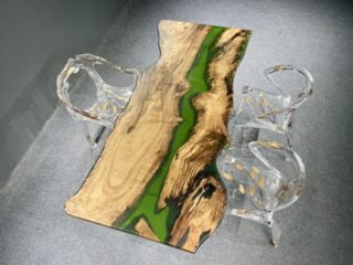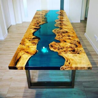 Heel wat houtsoorten kunnen gecombineerd worden met epoxy, zoals een beuk, den of eik. Epoxy maakt het hout vochtbestendig, beschermt het hout en zorgt voor een geweldige uitstraling. Veel meer dan een houten tafel, giethars, een mal en wat materialen heb je niet nodig om aan de slag te gaan. Er zijn heel wat DIY-video’s die je van naaldje tot draadje uitleggen welke materialen je nodig hebt om je epoxy tafel te maken en hoe je dit aanpakt. Uiteraard is het ook steeds mogelijk een al afgewerkte epoxy tafel te kopen in jouw houtsoort en met de gewenste afwerking naar keuze.