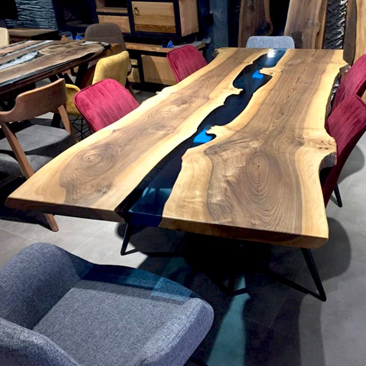 Naast de verschillende maten zijn er ook verschillende soorten epoxy tafels. Er zijn er bijvoorbeeld zwarte tafels en er worden ook heel wat houtsoorten met epoxy gecombineerd. Zo zijn er prachtige boomstamtafels en riviertafels die over het algemeen ontzettend populair zijn. Weet dat de giethars ook gebruikt kan worden om een coating te voorzien. Elk tafelblad kun je in principe voorzien van een glanzende coating. Dit is niet alleen goed voor de uitstraling, maar het beschermt ook je tafelblad tegen vuil en krassen.